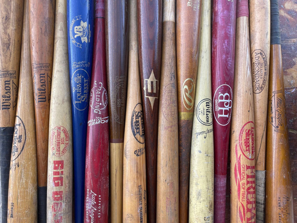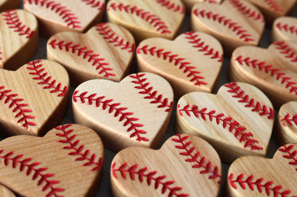 Interior Bat Wood Hearts with Red Baseball Seams Engraving