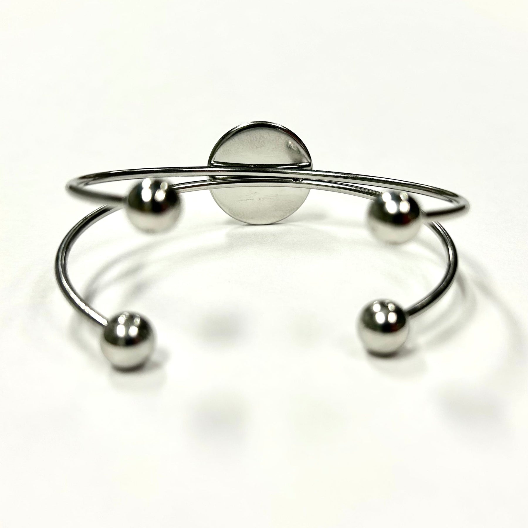 The circular piece of baseball is 20mm in diameter and the bracelet opening is adjustable in width. Bracelet metal is stainless steel.