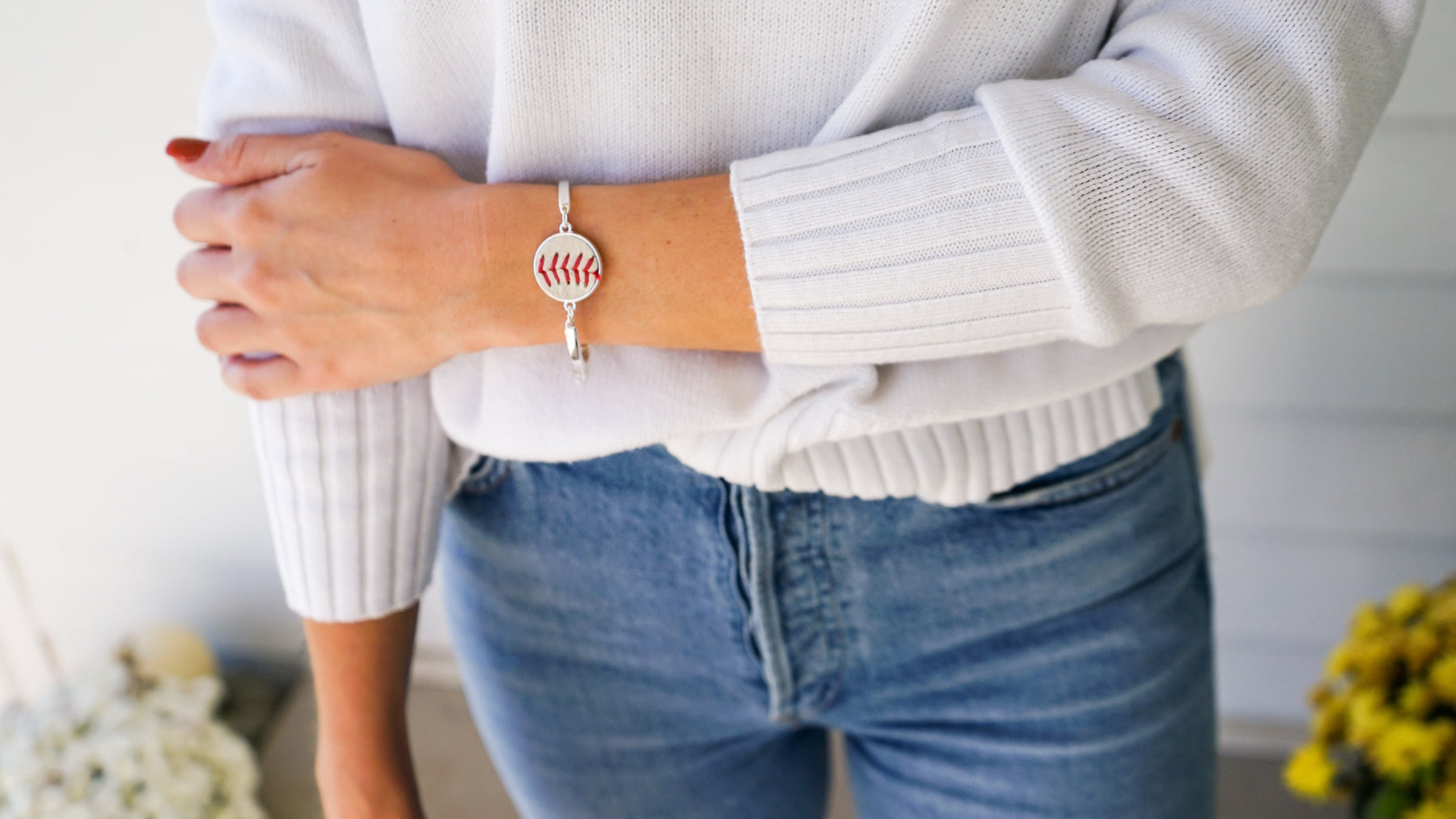 Each silver colored bracelet is created from a section of a baseball seam, taken straight from a baseball that earned its scuffs and marks on the field of a high school, little league, or college somewhere in the United States.
