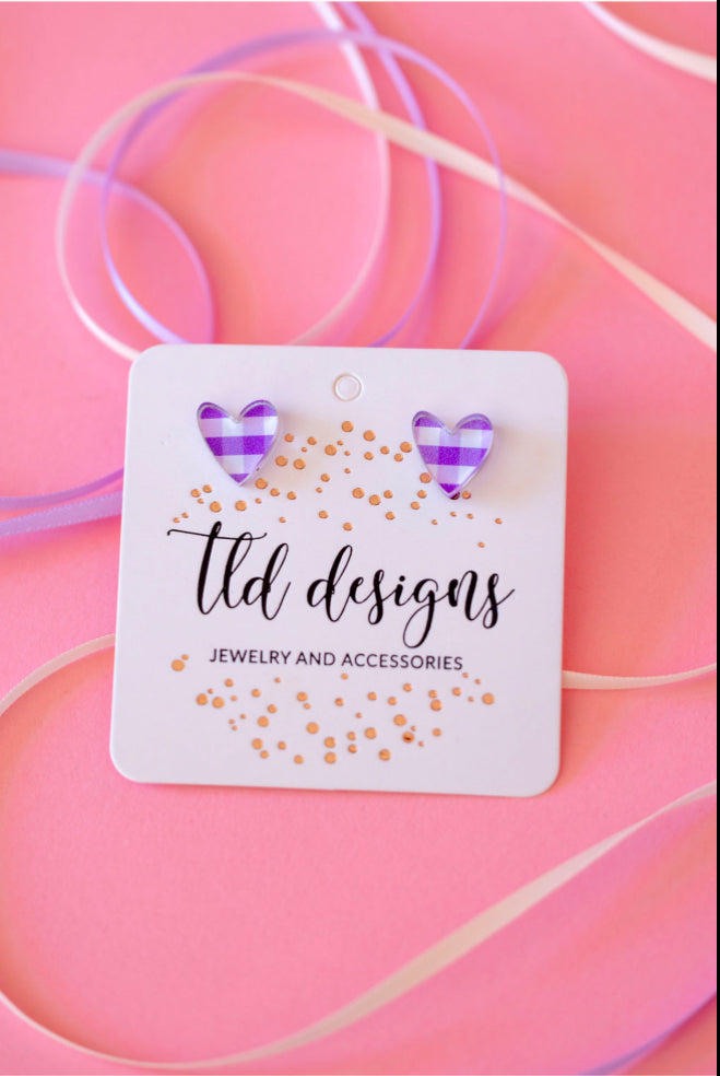Plaid heart studs- stainless steel