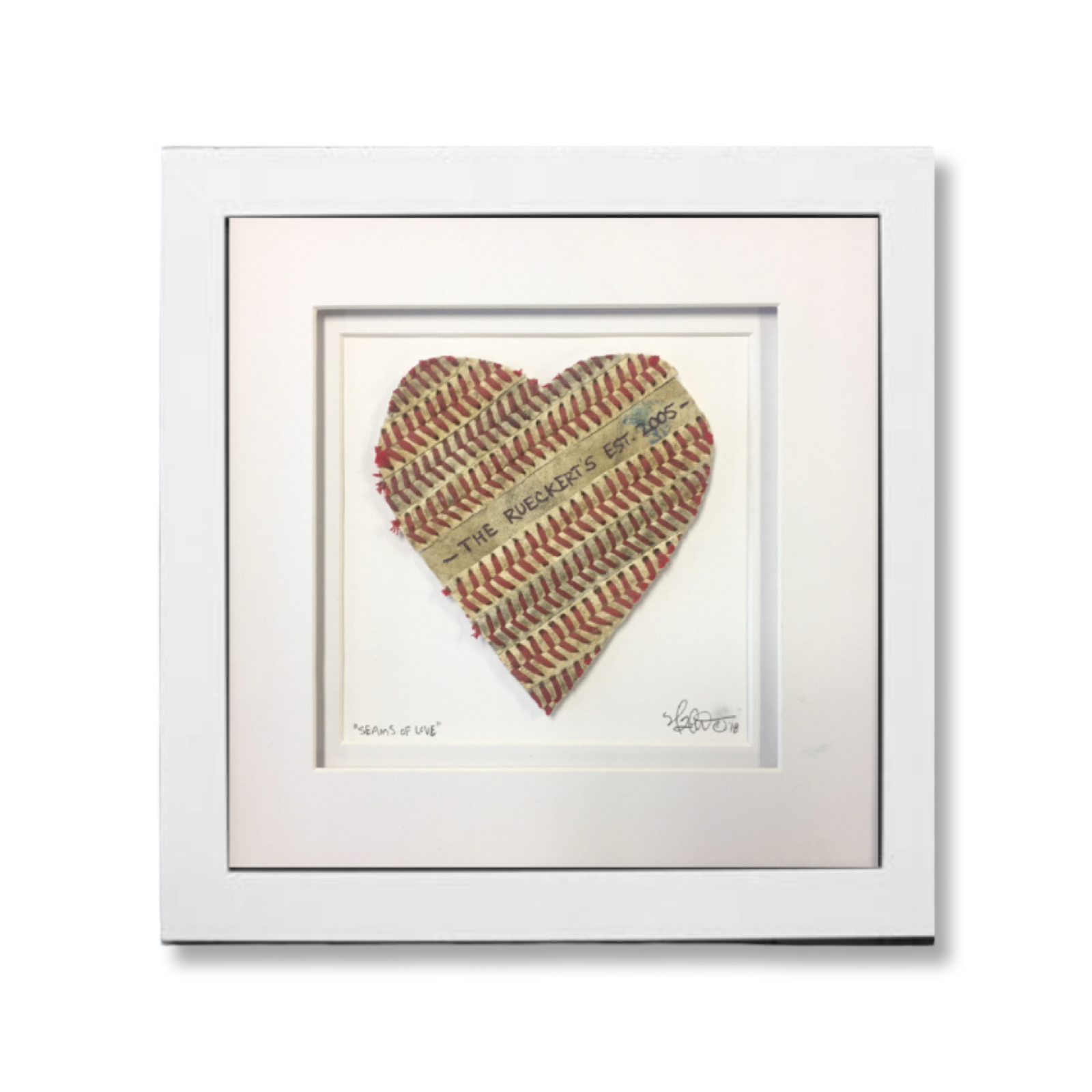 This beautifully handcrafted, custom artwork is fashioned in the likeness of a heart, to bring out the love of baseball in a unique and meaningful way.